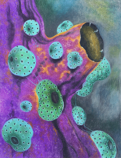 2008, Aquarell-Karton, Pastellstifte, 50 x 65 cm