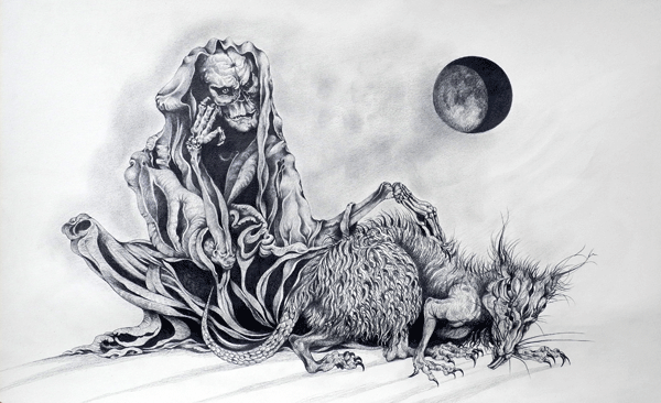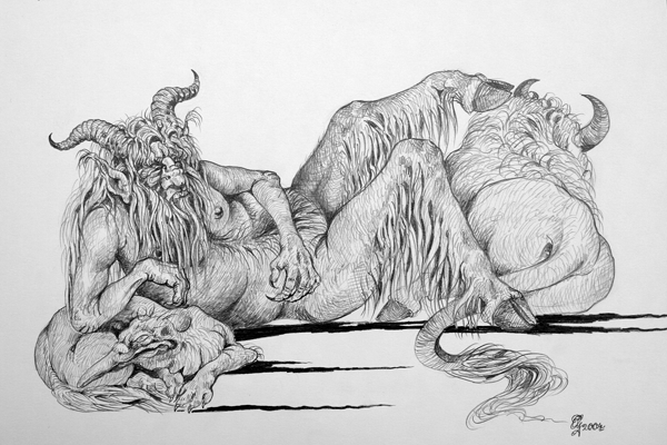 2007, weißer Zeichenkarton, Bleistifte, 33 x 51 cm