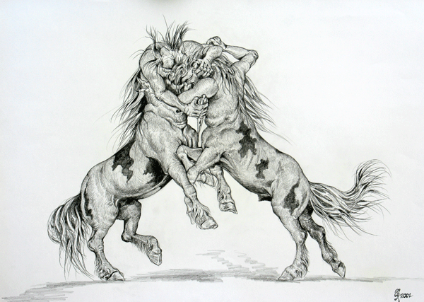 2001, weißes Zeichenpapier, Bleistift, ca. 50 x 65 cm